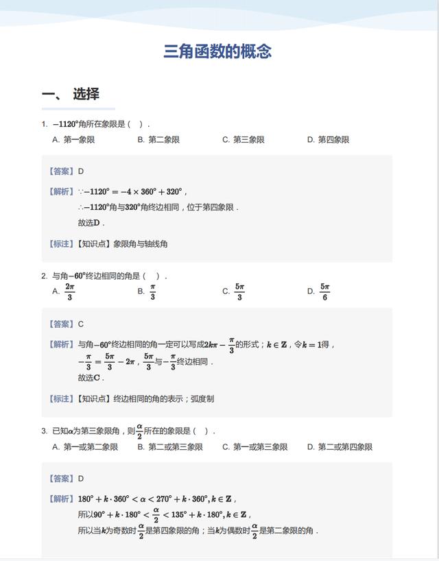 学生版:三角函数