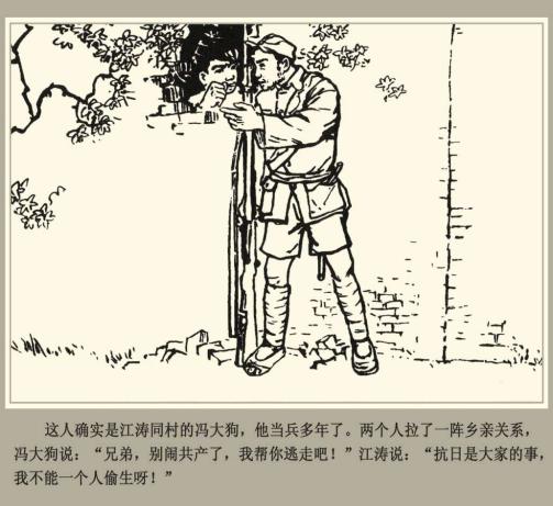 冯大狗说:“没错儿!我这人就是爱交朋友。咱们既是乡亲,祖祖辈辈没有什么不好,怎么不能交朋友?前几年我还和朱大贵碰在一起,我们俩还不错。后来他开小差回家了,排长查问,我还替他遮掩了一番。要是抓回来呀,下半截子就打烂了!那时我还当上士哩,这会我又当起兵来。”