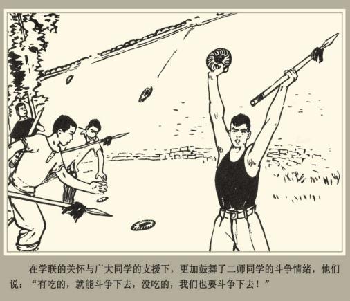 点评:江涛与站岗的老兵冯大狗建立了关系,保定学联和工会发动工人和学生对二师学生进行了食物援助,严萍也参加了。